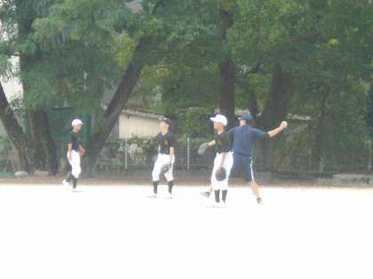 野球部の様子です。キャッチボールからスタートです。市新人大会に向けて、気持ちも新たに頑張りましょう。