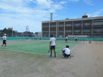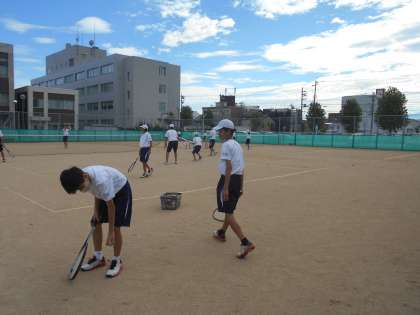 男子ソフトテニス部の様子です。練習終わりには振り返りや翌日の確認をしています。体調管理をしっかり行い、これからも頑張りましょう。