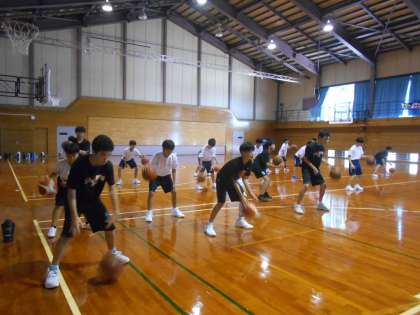 男子バスケットボール部の様子です。基本練習をみっちり行っていました。今日は特別コーチにも来てもらい、一緒に練習をみていただきました。