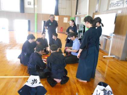 剣道部の様子です。今日は審判グッズを手に取り、道具の扱い方から勉強しました。審判ができるようにこれから練習が必要です。