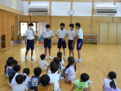 今日は西田地方保育園で生徒会主催による福祉ボランティア活動を行い、園児の皆さんとじゃんけん列車や風船バレーをしました。