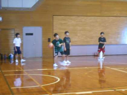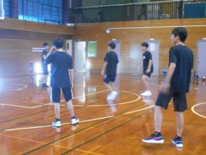 男子バスケットボール部の様子です。夏休みの練習も今日を含め残り4日間となりました。時間を有意義に使って、技術の向上に努めています。