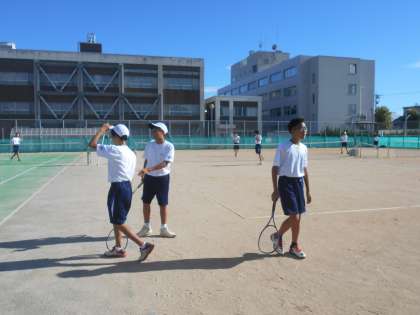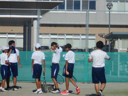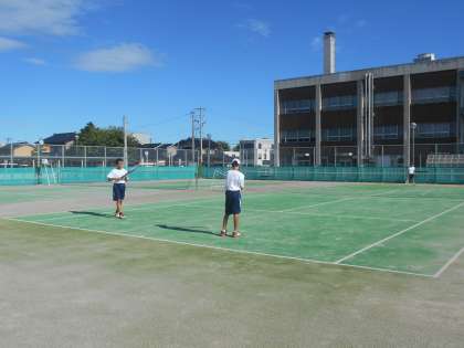 男子ソフトテニス部の様子です。残り2回の夏休み中の部活動を有意義に過ごしています。