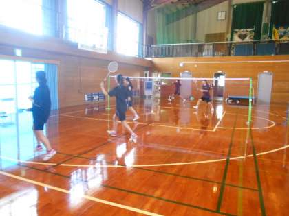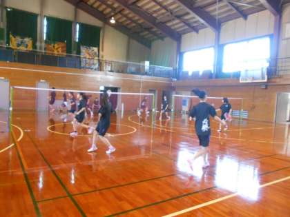 女子バドミントン部の様子です。この夏休み、暑い中でも熱中症対策をとりながら、しっかり練習をしました。