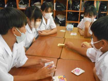 絵でのしりとりゲームや、カードゲームをしたクラスもあり、クラスによって趣向は違いましたが、どのクラスも楽しい時間を過ごせたようです。笑顔あふれる2学期になるように、心にちょっとした余裕をもって、優しい気持ちで過ごしていきましょう。