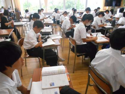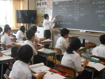 数学の授業では、教育実習生の先生と「文字式を利用して2つの重さの関係を表す」ことに取り組みました。課題はクリアできたでしょうか。