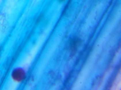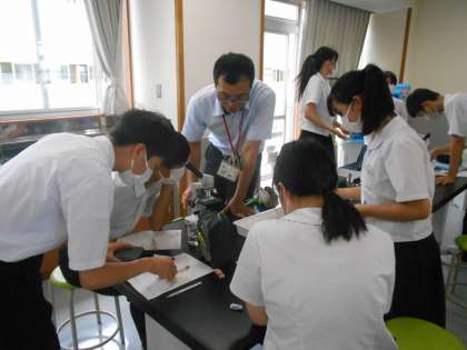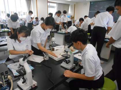 理科の授業では、植物細胞の中には何が入っているのか、顕微鏡を使って調べました。うまく撮影できませんでしたが、写真のようなものが見えました。