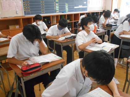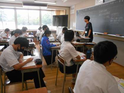保健体育の授業は、教育実習生の先生による保健分野の学習で、空気の汚れ、換気、一酸化炭素について、自分自身の健康との関わりを考えました。