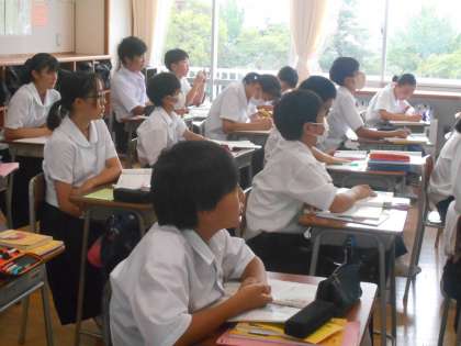 英語の授業では、時間に関わる表現を勉強しています。小学校で取り組んだことを思い出しながら活動しました。