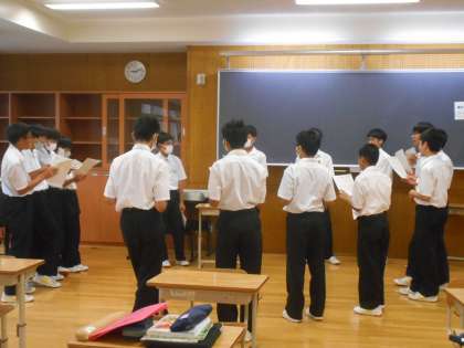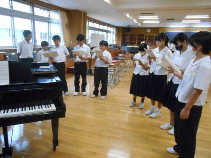 音楽の授業では、合唱コンクールで歌う曲の練習をしました。初めての合唱コンクールに向けて、期待もふくらんでいることと思います。