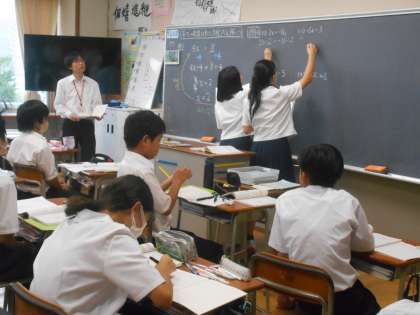 数学の授業では、等式の性質を使って方程式を解くことに取り組んでおり、自分が解いた方法を発表する場面もありました。