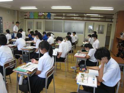英語の授業では、英作文に取り組みました。既習表現を使って、書くことができたでしょうか。