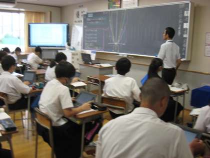 数学の授業では、値が変わるとどのようにグラフが変わるのか、Chromebookを使って視覚的に見ることによって、理解を進めました。