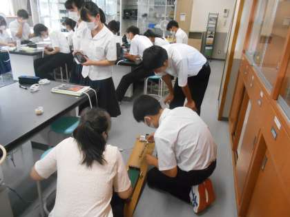 理科の授業では、水平な面上の台車の運動のようすを記録タイマーを使って調べ、分析をしました。どんなことが分かったのでしょうか。