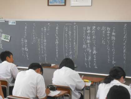 国語の授業では、「大人になれなかった弟たち…」を読み、戦争の被害を繰り返してほしくないという思いを読み取ることができました。