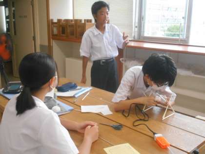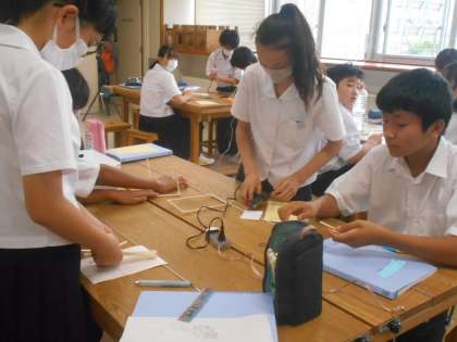 技術の授業では、1リットルの水が入ったペットボトルを置いても崩れない台をいかに作るかに苦戦しています。どんな台になるのでしょうか。