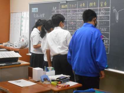 理科の授業では、これまで学習したいろいろな気体の性質について、みんなで力を合わせて表にまとめることができました。すばらしいです。