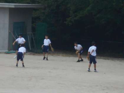 保健体育の授業では、ソフトボールに取り組んでいます。このクラスも少しずつ距離をとってキャッチボールをしていました。