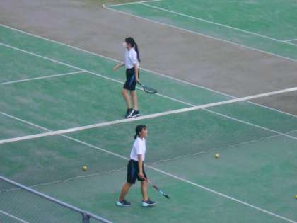 1時間もしないうちにグラウンドの水が引き、練習ができました。すばらしいグラウンドです。雨が止み、テニスコートも使うことができました。