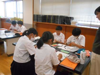 美術の授業では、いよいよ着彩に入った人もいました。自分のイメージを形にしていきましょう。