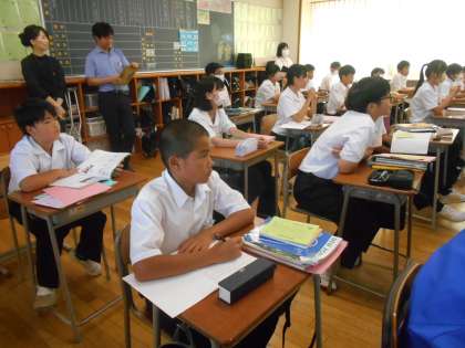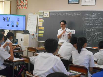 英語の授業では、本文の内容を、where,what,howをキーワードに読み取っていきました。
