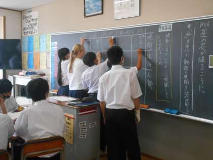 国語の授業では、「星の花が降るころに」を読んで、主人公が場面によってどのように変化していくのか表にして捉えました。
