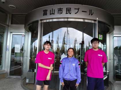富山市民プールで行われた富山市新人大会水泳競技に1年生3名が出場し、女子50m平泳ぎ2位と3位に入賞と、大活躍でした。