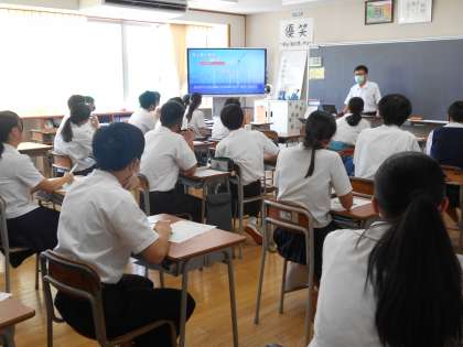 2限の学活では、先週に引き続き卒業研究のクラス発表会を行いました。どの発表も興味深い内容で、自分たちの生活を見直すきっかけができたり、様々なことを考えさせられたりと、充実した時間になっています。