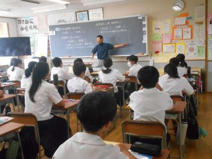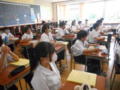 保健体育の授業は、保健分野「呼吸器、循環器の変化」について勉強しました。最後に、次の授業についてお話があり、身を乗り出すように聞いていました。