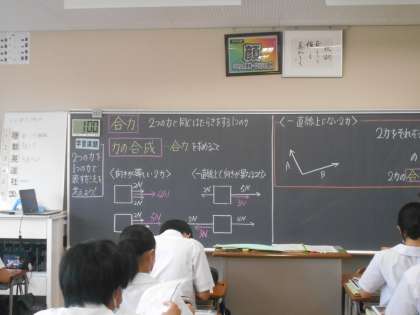 理科の授業では、2つの力を1つの力で表す方法について勉強しており、図に描いて理解を進めました。