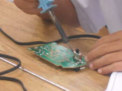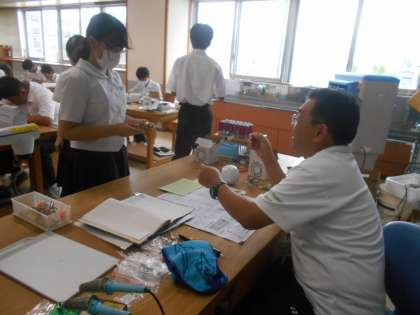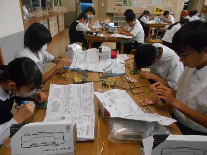 技術の授業では、ハンダ付けに取り組んでおり、できあがった物を担当の先生にチェックしてもらいました。