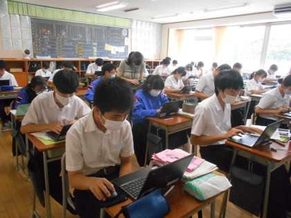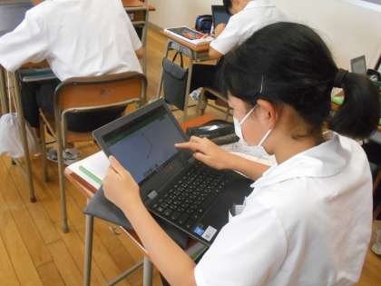 理科の授業では、力の合成をマスターするために、Chromebookを使ってクラウド教材に取り組み、たくさんの問題に触れてることで基礎的な力を身に付けていました。