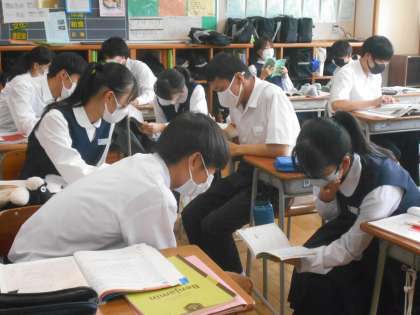 英語の授業では、単語帳を使って、ペアで練習をしていました。課題にすぐに向き合って練習を始める姿は、さすが3年生だなと思いました。