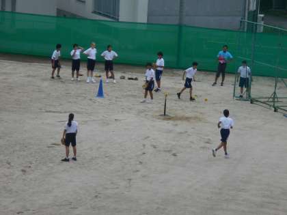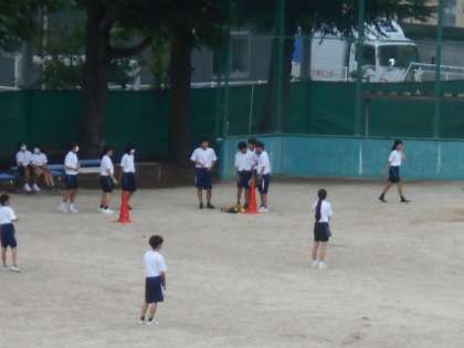 保健体育の授業はソフトボールです。4グループに分かれ、対戦形式で進めていました。