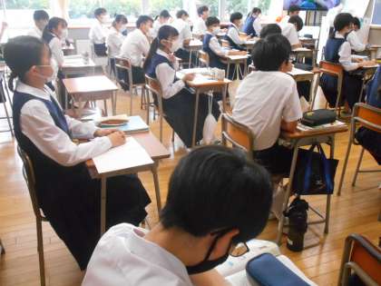 理科の授業では、条件を少しずつ変えた植物を比較することで、どこからの蒸散が最も多いのか、考えました。