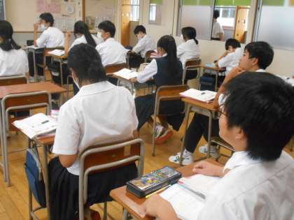 英語の授業では、「してはいけないこと」をどのように表現するか勉強しました。生活の中で表現できることがたくさんありそうですね。