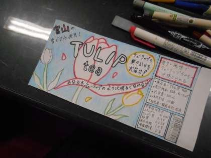 美術の授業では、ペットボトルのパッケージ作りを進めています。アイディアあふれるものが多く、面白いです。