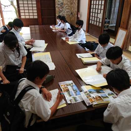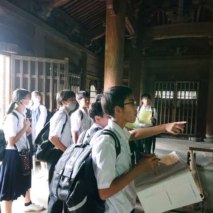 瑞龍寺に着き、クラス写真を撮った後、班別活動に入りました。見学しながら、しっかりメモ取るなど学びも忘れません。