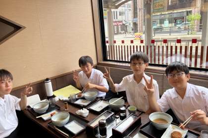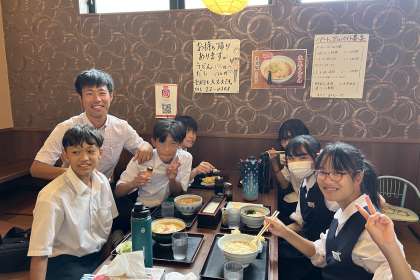 各班で昼食をとっています。午後の活動に向けてエネルギー満タンです。