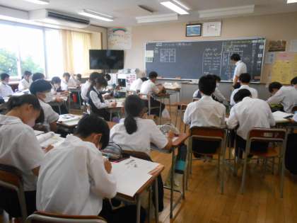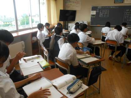 数学の授業では、方程式を利用して問題を解決することに取り組んでおり、クラスメートと助け合って活動していました。