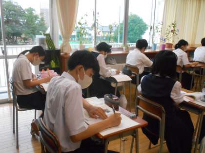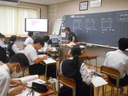 数学の授業では、「動点」に関する問題に取り組んでいました。図にかいて考えると分かりやすいようです。
