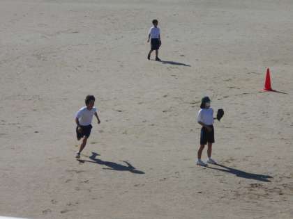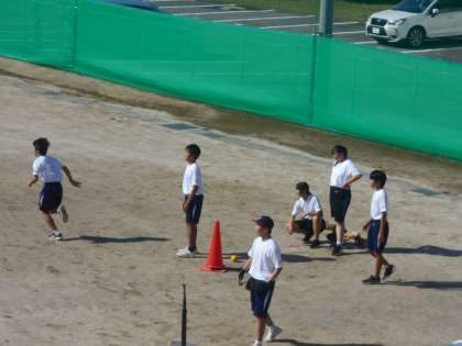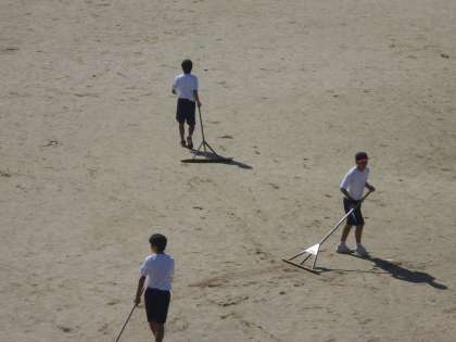 保健体育の授業ではソフトボールに取り組んでいます。授業の終わりにはコート整備もきちんと行っていました。