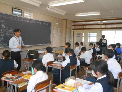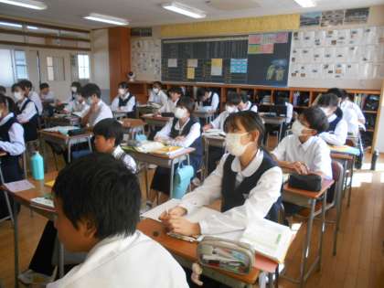 英語の授業では、先生方のモデル対話を聞き、プラスする情報の1文や疑問文の使い方を参考にして、長く対話できることを目標にトライしました。
