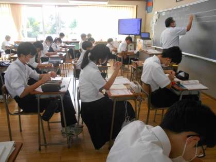 数学の授業では、内角の和について、説明の基にしていることをみんなで考えました。