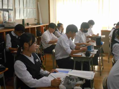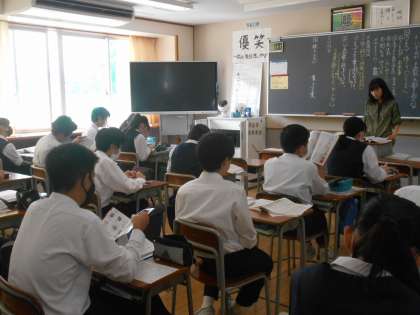 国語の授業では、和歌の世界の学習に入り、今日は古今和歌集の仮名序について勉強しました。