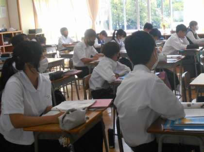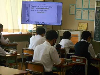 英語の授業では、本文を区切って読む音読練習をしました。区切ることで、内容も捉えやすくなります。家でもやってみましょう。