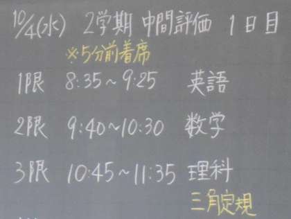 10月4日(水)3学年 2学期中間評価1日目(その1)