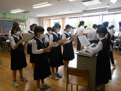 中間評価が終わった今日から、清掃後の合唱練習が始まりました。これまで授業だけでの練習でしたが、本番当日まで各学級でパートリーダーを中心に練習を進めていきます。