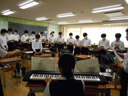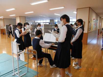 それぞれの場所で、リーダーを中心に工夫しながら練習を進めていました。「もっとこんな風に歌ったらいいと思います。」「出だしに気を付けましょう。」など、声を掛合う場面も見られました。