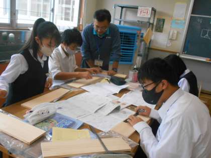 技術の授業は、木製本棚の制作に入りました。今日は板に部品をけがく時間でした。うまくかけたでしょうか。